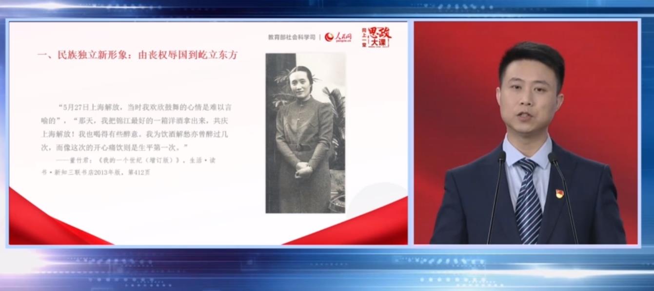 本次“四史”思政大课的内容以新中国史为主题,将“四史”学习教育与当代青年责任与担当相结合,旨在引导青年学生正确认识党情国情,不忘初心,自觉担当国家发展使命。课程中,主讲专家天津师范大学王雪超、上海师范大学张志丹和复旦大学肖存良分别从新中国成立的伟大意义、新中国经济发展的奇迹和新中国国家制度建设的历程和伟大成就为主题,从不同角度为同学们生动阐述了新中国成立以来翻天覆地的发展变化。他们根据习近平总书记指示,提出要抓好青年学生学习教育,着力讲好党的故事、革命的故事、英雄的故事,厚植爱党、爱国、爱社会主义的情感,让红色基因、革命薪火代代传承。