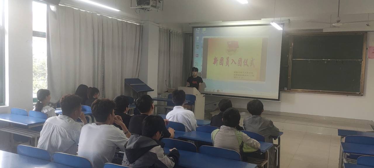 最后,李聪同学带领全体新进团员面对庄严的团旗进行入团宣誓并奏唱团歌,本次入团仪式在激情澎湃、热情高涨的团歌中落下帷幕。
