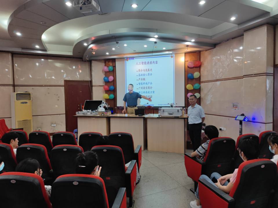 接着,来自广州昂宝电子有限公司的陈教授面向学生做了“人工智能的发展”专题讲座。广州昂宝电子有限公司成立于于2010年4月,主要负责人工智能物联网相关的芯片、模组,与系统设计研发,目前是是亚洲最大的集成电路电源管理芯片设计公司。从2018年起,为响应国家加快推进人工智能落地的号召,公司与多所高校紧密合作,助力高校建设AI智能科研实验室,促进高端科技人才的培养。广州昂宝面向高校提供人工智能的硬件、软件、算法和课程等核心资源和服务,支持高校开展人工智能领域的科研与教育,联合建设科研实验室、课程实训等各项合作。陈教授用诙谐的语言,简单易懂的实例,帮助新生们理解人工智能的基本概念;随后介绍了人工智能发展历史,深度讲解了计算机视觉、语音识别、智能机器人、融合定位等知识。