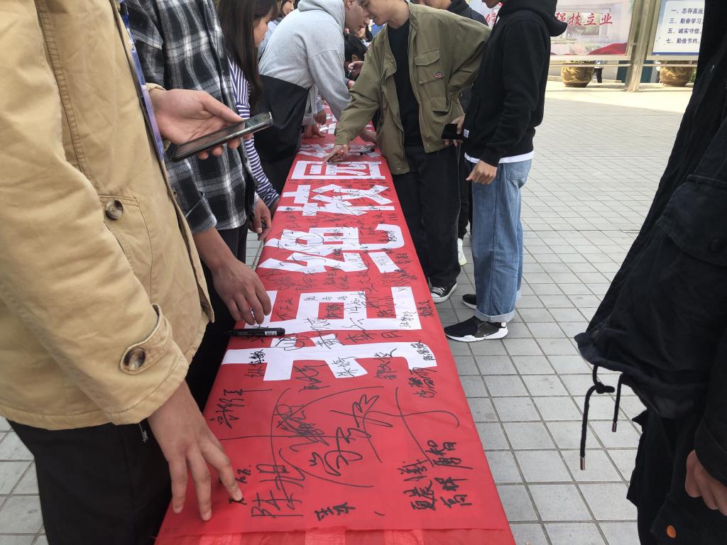 同时,学院团总支积极组织学生参加校团委举办的诚信签名活动,以此增强大学生诚信意识和思想道德素质。同学们在条幅上郑重签上自己的名字,现场气氛热烈,秩序井然。大家纷纷表示,要以诚信为立身之本、做人之道,身体力行,把诚写在脸上,把信装在心里,从我做起,从点滴做起。(撰稿:章晓智 摄影:张世瑞 审核:吴访 发布:章晓智)