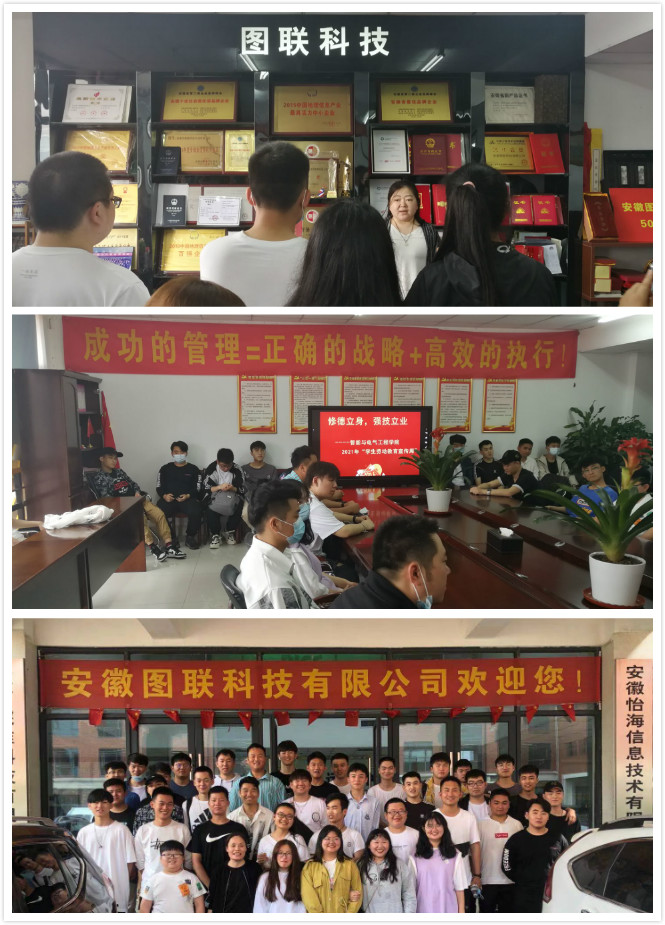 三是结合专业,赴企业开展职业体验观摩活动。5月14日下午同学们在安徽图联科技有限公司的会议室里,聆听了工作人员对公司情况的详细介绍,包括企业发展历程、主营业务、人事管理制度等企业文化。随后,学生分组参观了企业工作环境。整个参观过程,学生们认真积极,感受颇深。