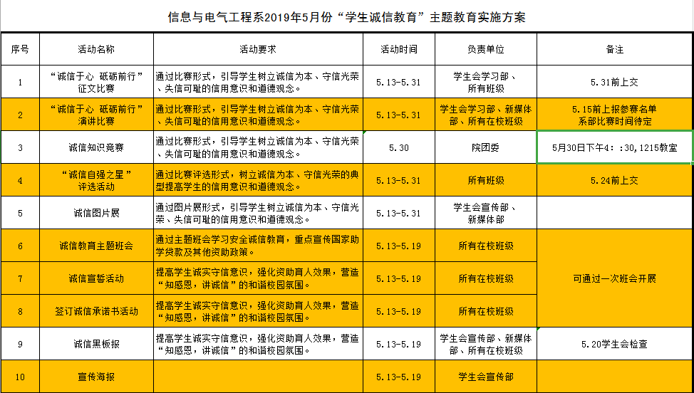 附:信息与电气工程系2019年5月份“学生诚信教育”主题教育实施方案