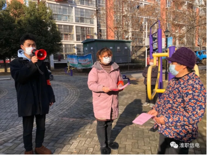 4.“我是党员,我来报到!”90后的年轻党员蔡德胜是2019级电气自动化技术专业社招班学生,在淮南市中安联合煤化有限责任公司工作。2月8日清晨,刚下夜班的蔡德胜,顾不上去医院照顾生病吊水的妻子,一大早就来到所居住的泰府名邸小区值守,并帮助社区干部悬挂疫情防范横幅、向社区居民发放防疫宣传单、为出入的小区居民测量体温等,尽心尽力做好各项防疫工作。