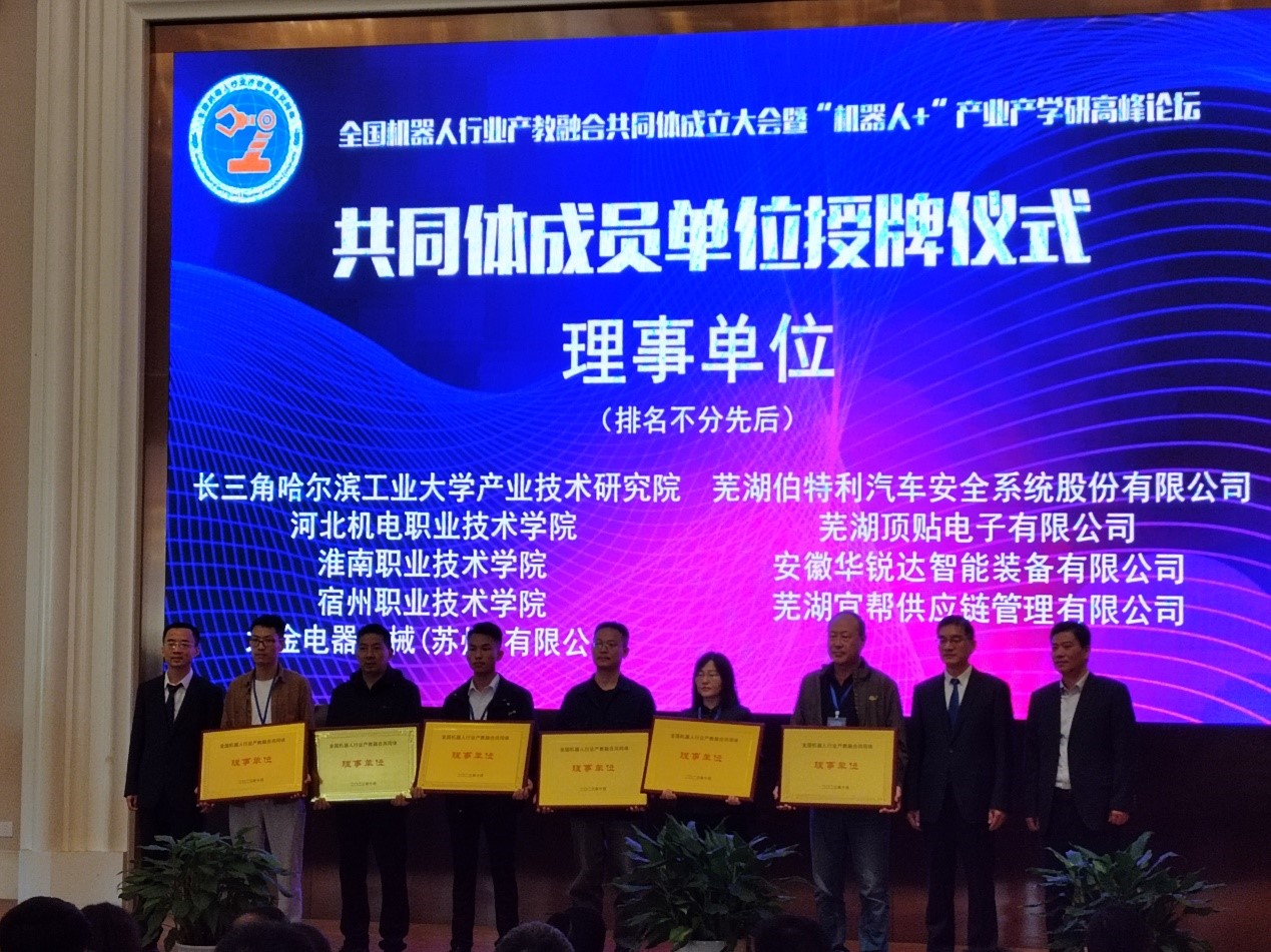2023年10月28日至29日,beat365英国官方网站受邀参加在安徽芜湖举办的全国机器人行业产教融合共同体成立大会暨“机器人+”产学研高峰论坛。在全国机械职业教育教学指导委员会、机械工业教育发展中心和中国机器人产业联盟的指导下,由芜湖机器人产业发展集团有限公司和合肥工业大学、安徽工业大学、安徽机电职业技术学院拟联合牵头组建“全国机器人行业产教融合共同体”。beat365英国官方网站顺利成为“全国机器人行业产教融合共同体”的理事单位。