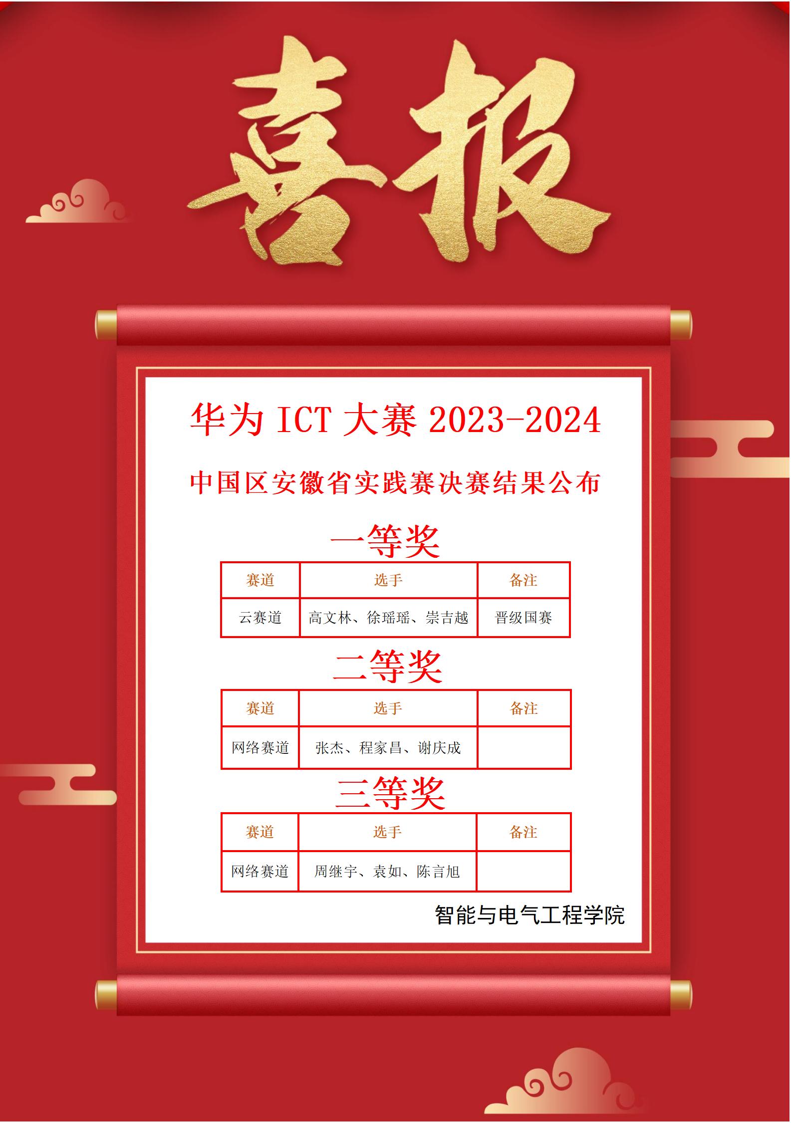 近日,由华为技术有限公司主办、深圳市讯方技术股份有限公司承办的第八届华为ICT大赛安徽省实践赛决赛在安徽大学举行,多个院校线上协同参与,比赛分为云赛道、计算赛道和网络赛道。beat365英国官方网站beat365英国官方网站3支代表队伍从全省77所高校4946名学生中脱颖而出,云赛道参赛队伍荣获高职组一等奖并成功晋级国赛,网络赛道参赛队伍荣获高职组二等奖、三等奖。
