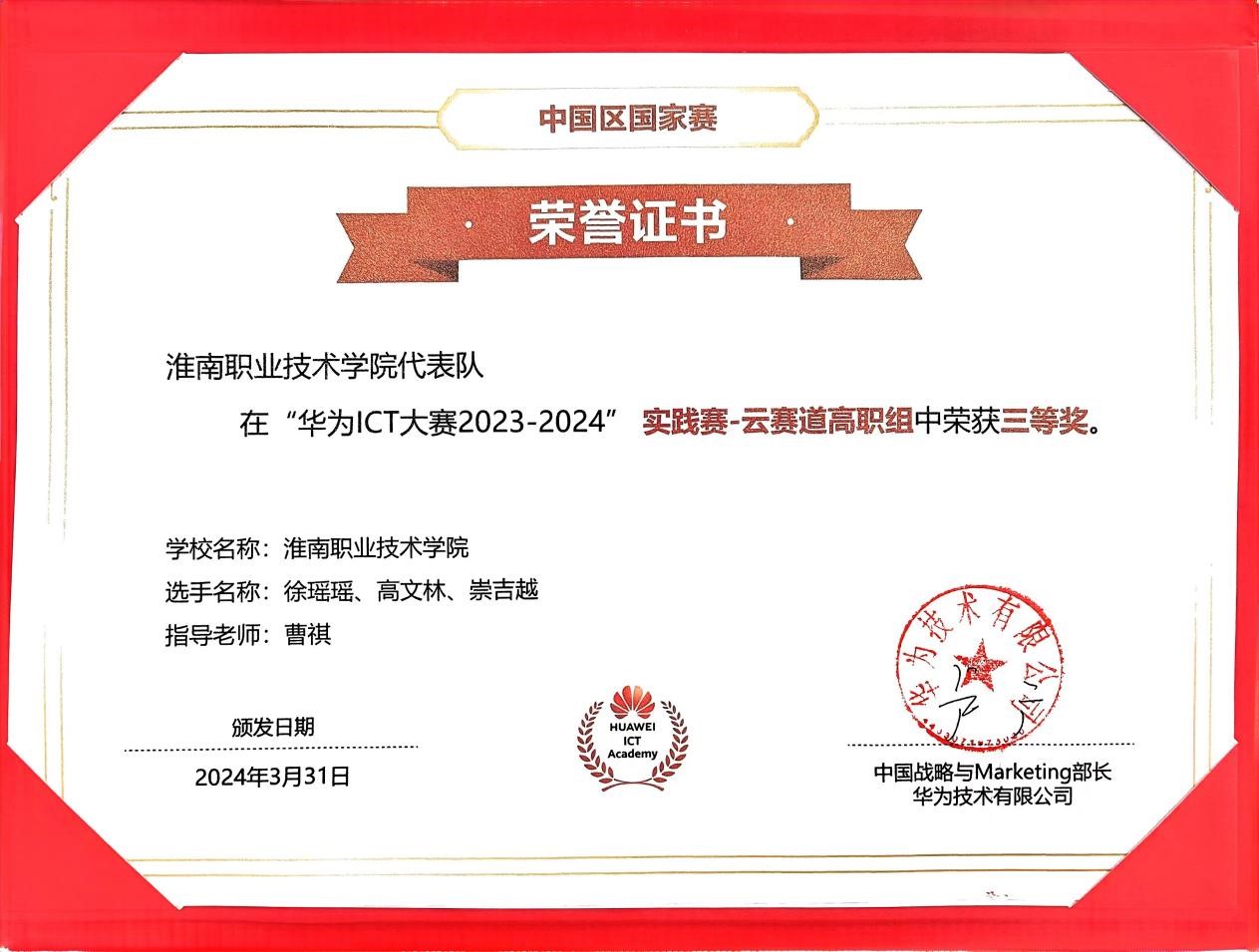 第八届华为 ICT 大赛 2023-2024 安徽省实践赛吸引了多达 77 所院校踊跃参与,共计 4946 名学生在赛场上展开激烈竞技。经过比拼,911 名学生凭借出色表现崭露头角,呈现了一场精彩绝伦的 ICT 技术巅峰对决。beat365英国官方网站的参赛学生在此次竞赛中表现卓越,分别荣获安徽省省赛一等、二等、三等奖各一项。