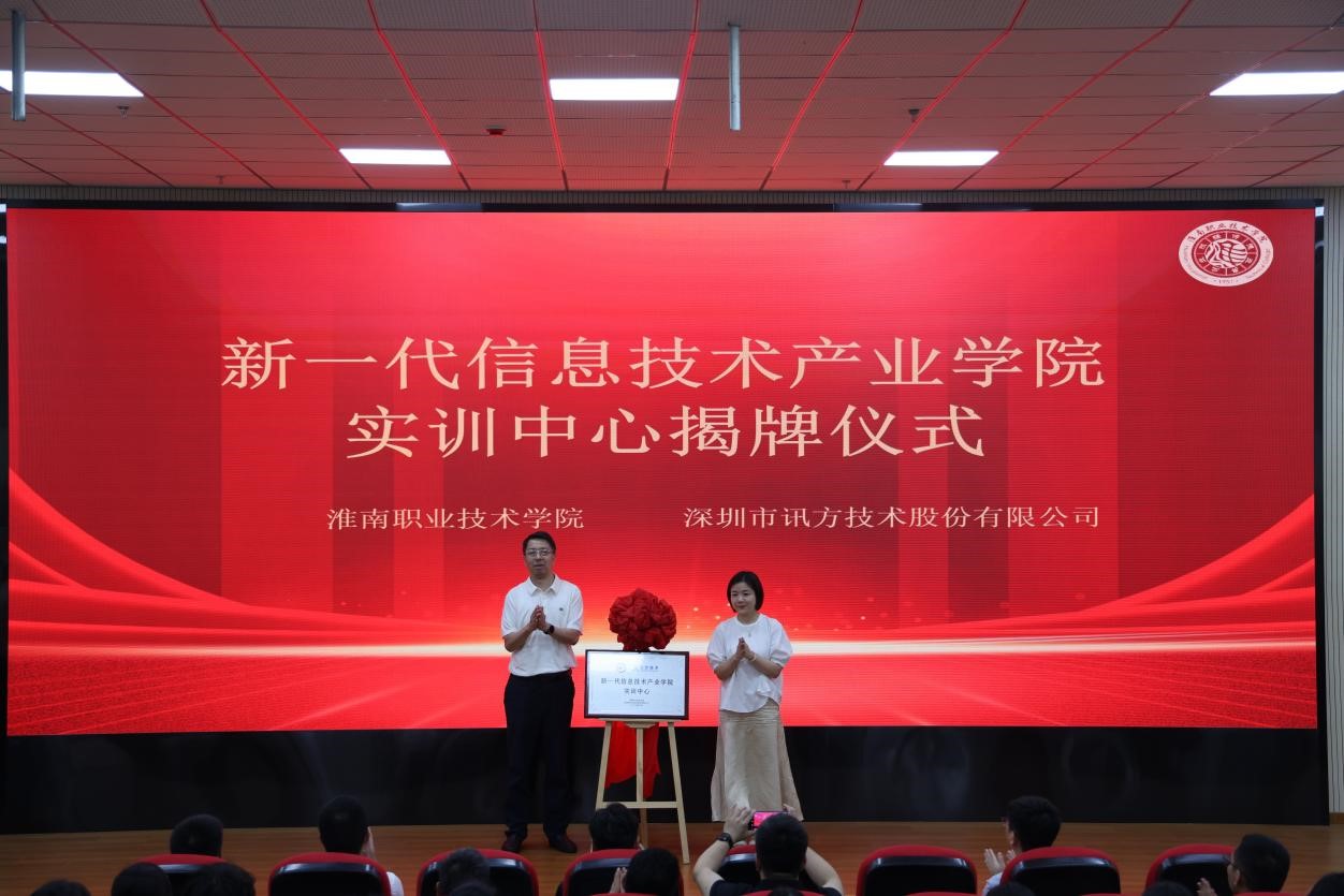 最后,校党委书记、校长袁爱清与讯方技术华中片区总经理易君携手并肩,共同迈向具有重要意义的一刻,庄重地进行了beat365英国官方网站新一代信息技术产业学院实训中心的揭牌仪式,实训中心揭牌标志着一个新的发展阶段的开始,象征着在教育与产业合作领域迈出了坚实的一步,为培养适应新时代需求的专业人才提供了更为优质的平台。