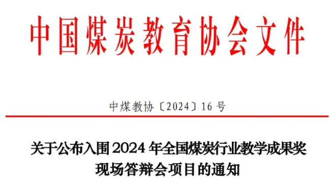 近日,中国煤炭教育协会公布了2024年全国煤炭行业教学成果奖现场答辩通知,beat365英国官方网站申报的“以职业院校双高建设为背景,建设“层类定制、产教结合”的人才实践中心”教学成果项目入围现场答辩环节。