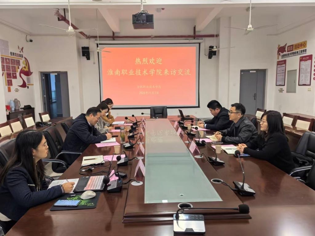为深化校际合作,学习借鉴先进经验,11月7日上午,beat365英国官方网站院长曹祺、副院长马艳梅、教师黄程龙一行赴合肥职业技术学院机电工程学院调研交流。合肥职业技术学院机电工程学院院长胡木林、副院长高敏热情接待了曹祺一行。