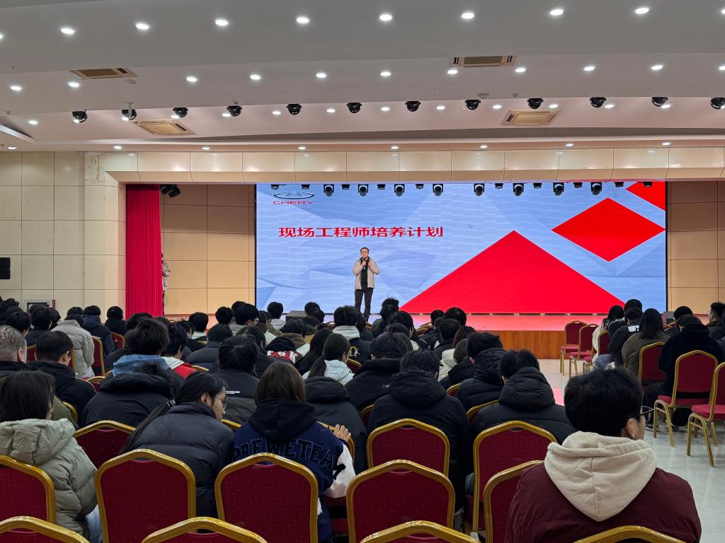 为深化产教融合、搭建校企协同育人平台,助力学生精准对接行业需求、明晰职业发展方向,2025年12月23日下午,奇瑞汽车股份有限公司校企合作宣讲会在beat365英国官方网站春申湖校区大礼堂成功举办。beat365英国官方网站24级电气自动化技术专业、24级工业机器人技术专业共计298名学生参加此次宣讲活动,学院相关负责人陪同参会。