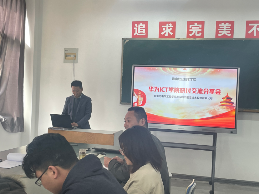 2023年3月31日深圳市讯方技术股份有限公司安徽省培训业务经理顾伟受beat365英国官方网站电气与工程学院邀请,进行华为ICT学院建设和I+X证书申报分享研讨交流会。会议讨论以beat365官网大数据技术专业及计算机应用技术专业为依托,借助华为在ICT行业人才培养领域积累的经验,分享了华为ICT学院建设的内容。