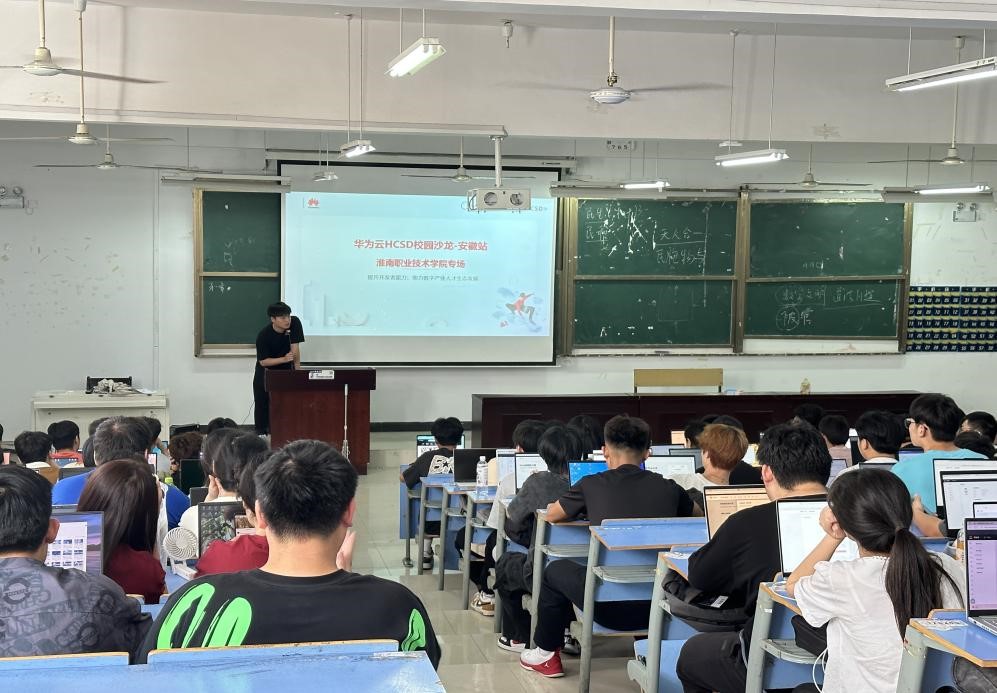 2023年6月2日在一号教学楼1215举行了“华为云HCSD校园沙龙”走进beat365英国官方网站讲座。本次活动由beat365英国官方网站王凡老师主持,介绍人为讯方技术许阳老师。华为云—AI共话行业技术、勇攀技术高峰,共建高校生态,助力院校人才培养。计算机应用技术和大数据技术全体学生参加了此次讲座。