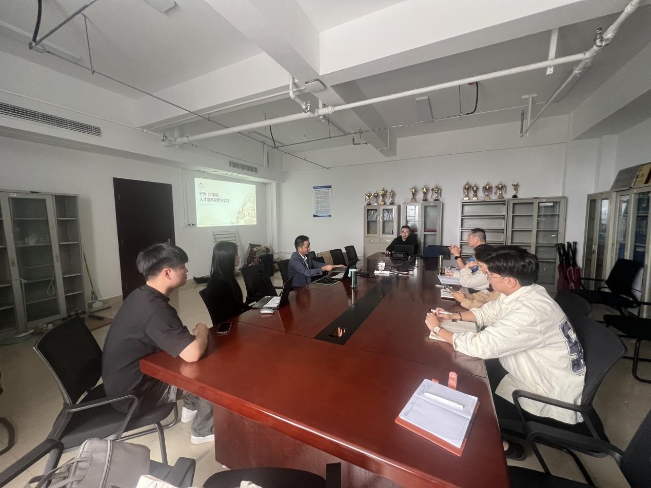 会议正式开始后,华为人才经理陈余洋介绍了ICT行业未来发展趋势以及华为ICT学院的成功案例,截止目前,华为ICT学院在安徽已有25所,全国有2600多所。这些学院不仅为教师和学生提供领先的ICT技术,还致力于推动公平优质教育。华为的人才生态“三棵树”业务模型提供了一个全面、系统的人才培养框架,这不仅为教师和学生提供了学习和发展的机会,也帮助行业从业者提升数字技能以适应新的工作环境。紧接着,讯方技术培训业务经理顾伟详细介绍了华为ICT学院具体落地事宜,并与参会人员进行深入讨论