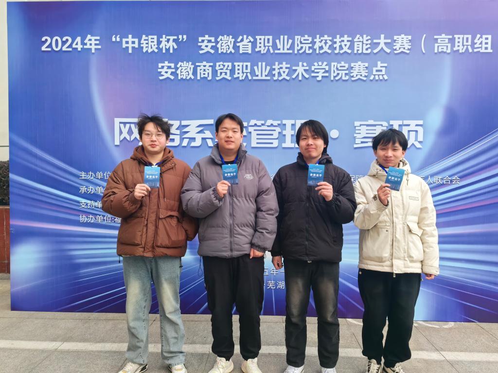 1月13至14日,2024年“中银杯”安徽省职业院校技能大赛(高职组)网络系统管理赛项在安徽商贸职业技术学院举办,来自安徽省30多所职业院校的82支队伍参加比赛,我校教师戚伟、张兴宇和方项指导的由谢庆成、王元伟、高立显和杨玉宝组成2支代表队,经过激烈的角逐,最终分获一、二等奖。