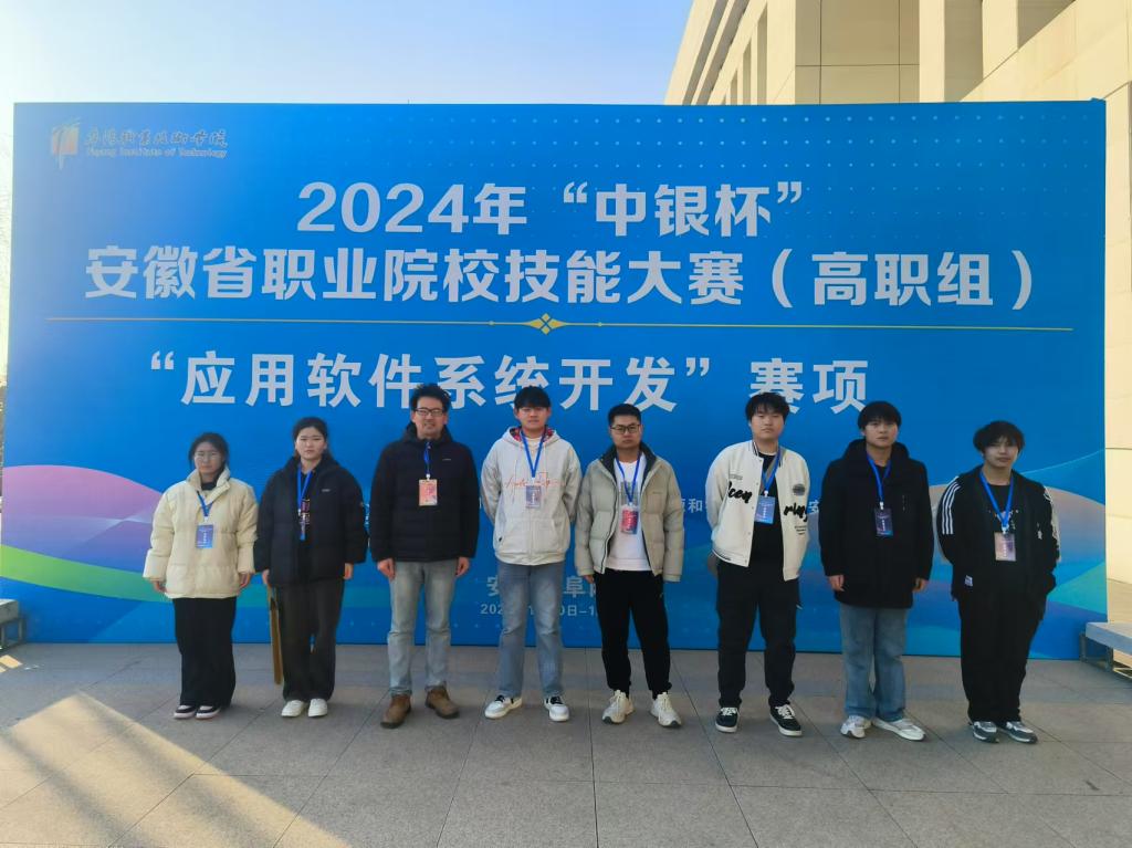 1月11至12日,2024年“中银杯”安徽省职业院校技能大赛(高职组)应用软件系统开发赛项在安徽省阜阳市举办,共有来自安徽省31所职业院校的55支代表队参赛。beat365英国官方网站贾超贤、王凡指导的学生袁清霖、刘新茹、姬茂忠、谢福顺、包畅、郭祥龙参赛,经过激烈角逐,荣获三等奖1项。