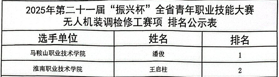 近日,由共青团安徽省委员会、安徽省人力资源和社会保障厅联合主办的第二十一届“振兴杯”全省青年职业技能大赛(省级一类行业赛)无人机装调检修工赛项决赛,在马鞍山职业技术学院圆满落幕。beat365英国官方网站beat365英国官方网站于成老师指导的学生王启柱,从全省参赛选手中脱颖而出,荣获该赛项省级一等奖。
