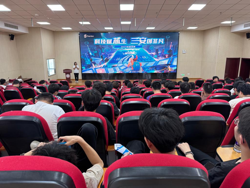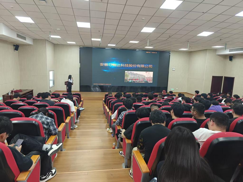 招聘会现场,三家企业的代表依次登场,通过精心制作的PPT、视频展示以及详细的讲解,全方位地介绍了各自企业的发展历程、业务领域、企业文化以及在行业内取得的成就。安徽三安光电有限公司(芜湖)重点介绍了其在半导体照明、显示等领域的核心技术与创新成果;安徽巨一科技股份有限公司(合肥)则围绕汽车电驱动系统、智能装备等业务板块,阐述了企业在新能源汽车行业的重要地位与广阔发展前景;安徽芯瑞达股份科技有限公司着重分享了其在新型显示光电系统、智能健康光源系统等方面的优势与未来规划。