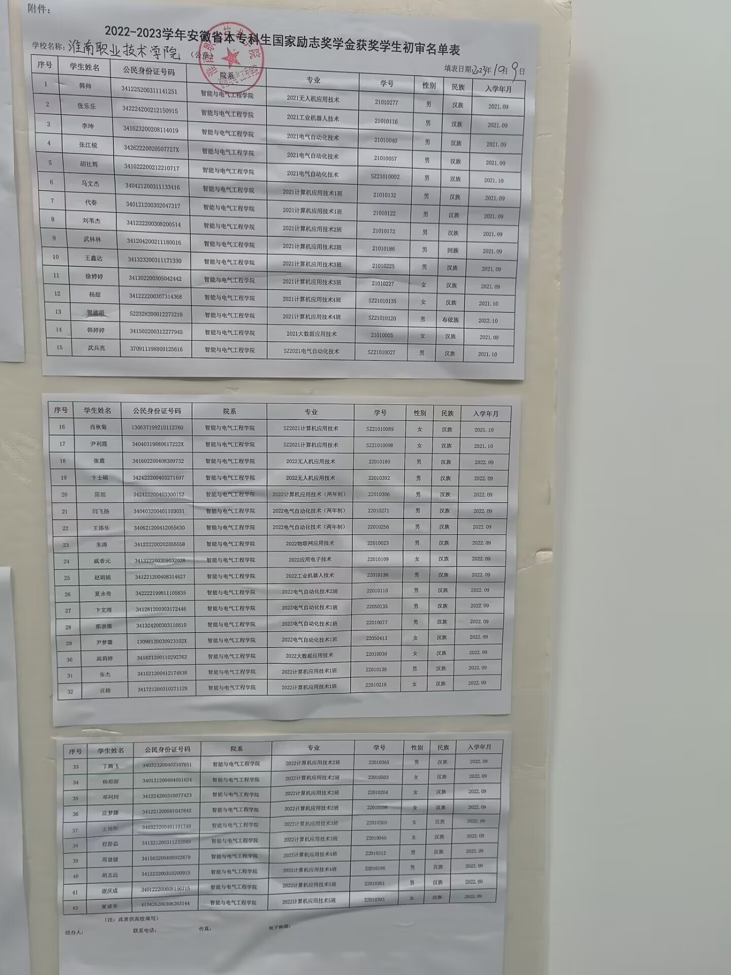 2022-2023学年安徽省本专科生国家励志奖学金获奖学生名单公示