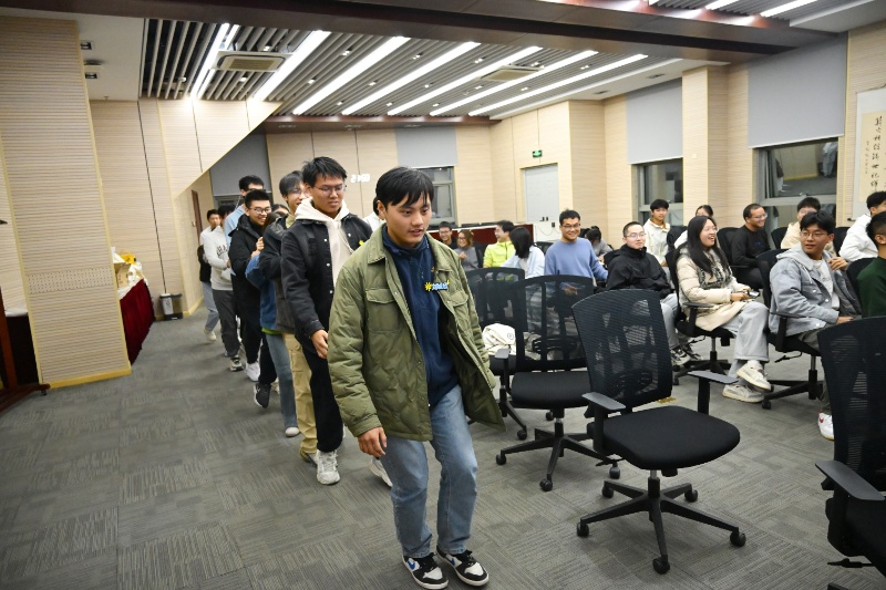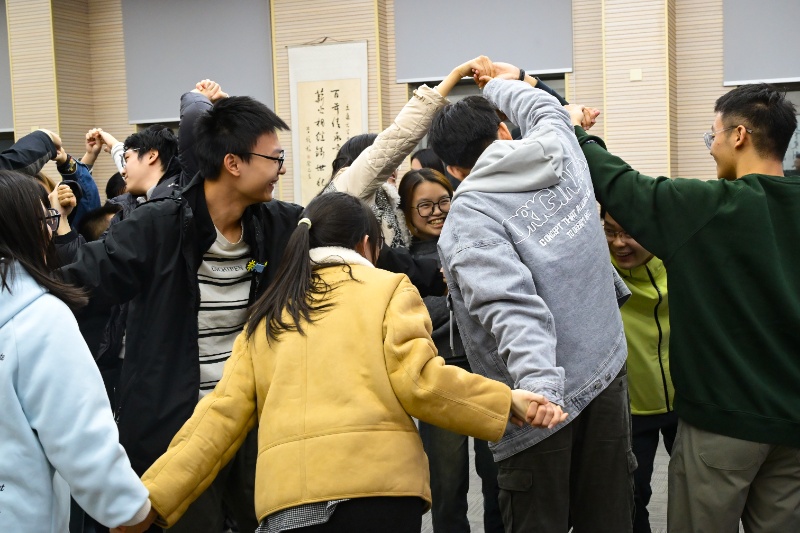 热身环节后,胡文婷将同学们分为三组展开分组竞技活动。“心有千千结”中大家手牵手解结,重现完整圆环;“趣味比一比”随机比较,妙趣横生,激发欢声笑语;“驿站传书”则考验团队信息传递的智慧和默契。经过多轮竞技,各小组依积分分获一、二、三等奖。