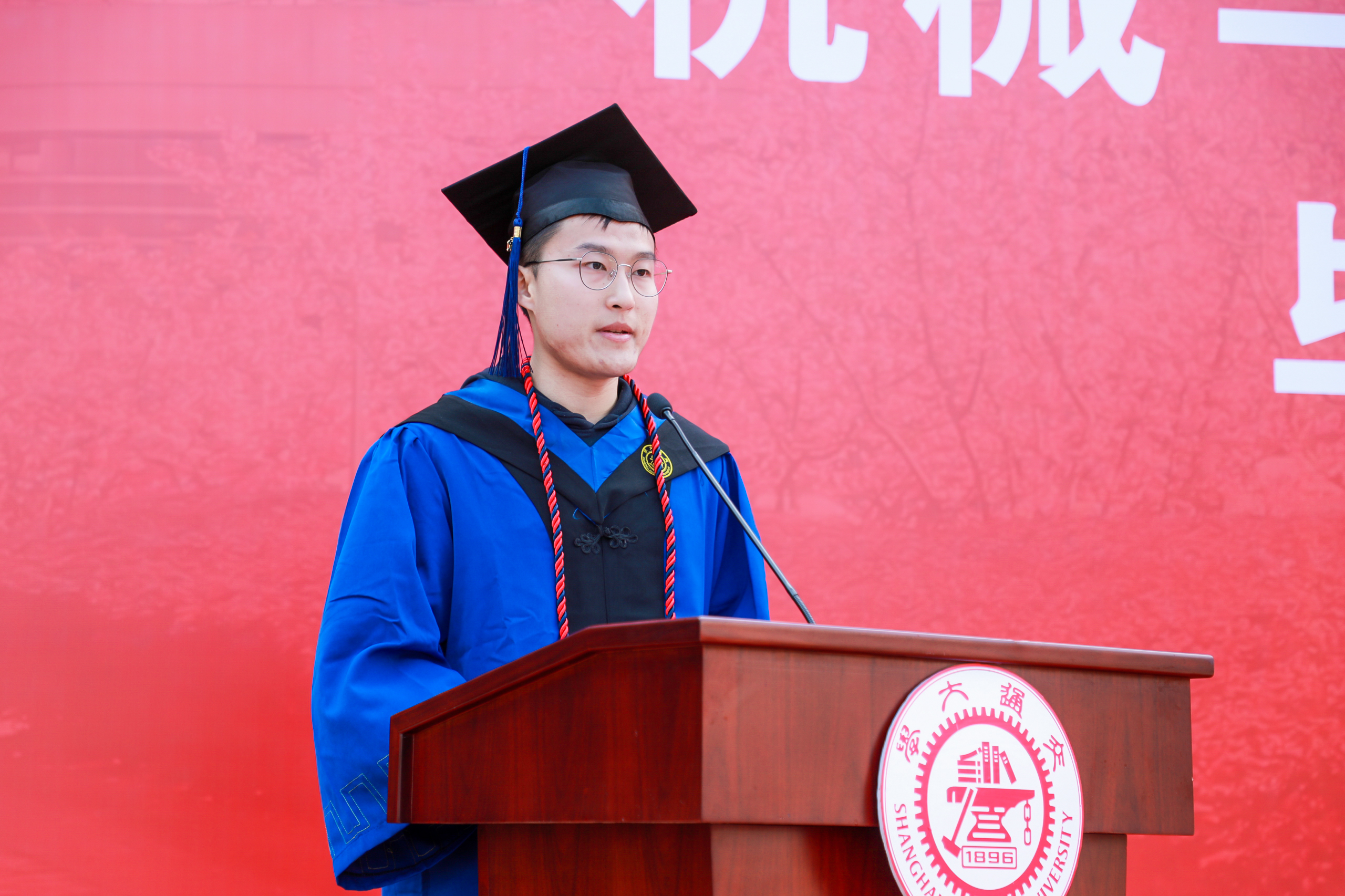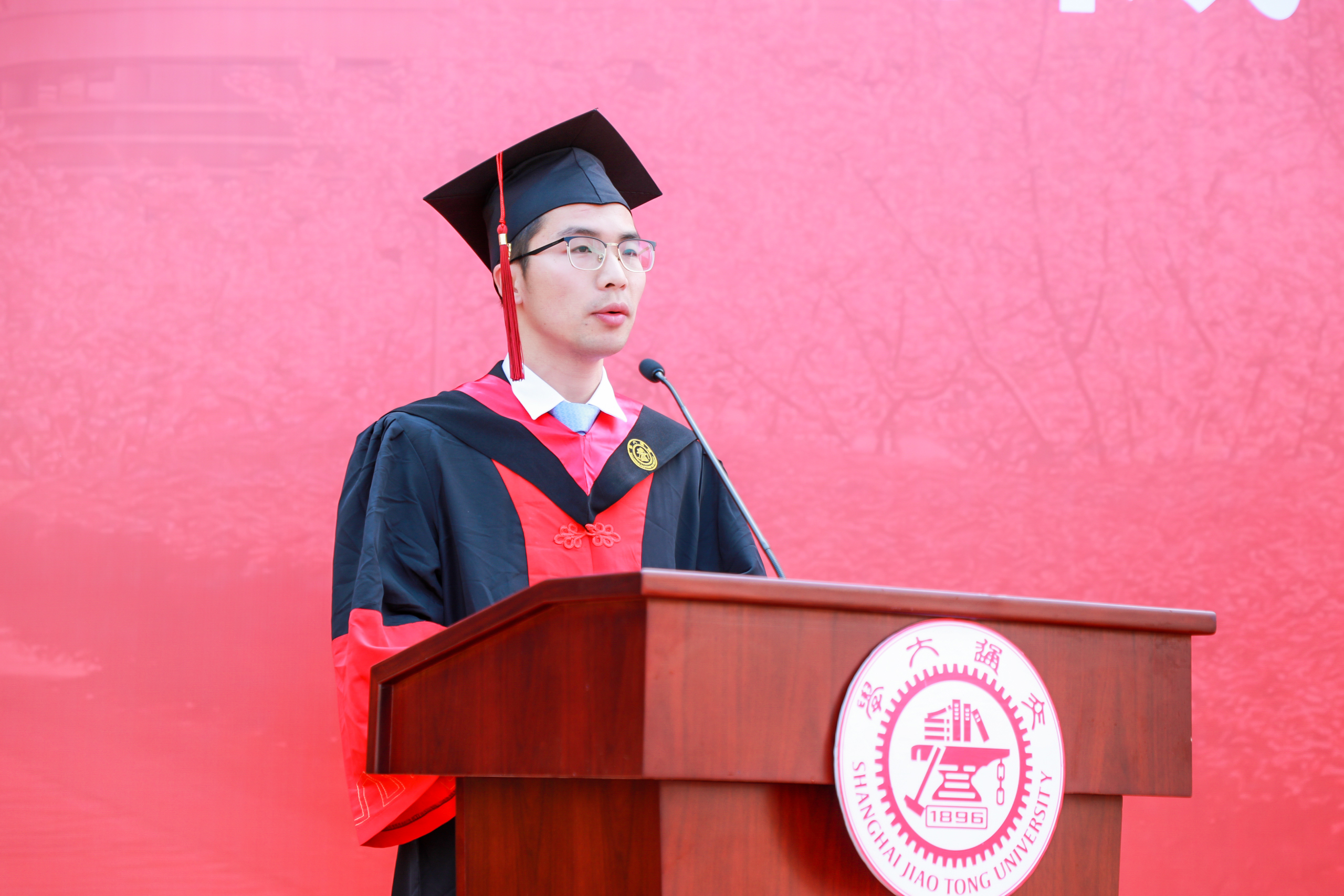 优秀博士毕业生代表阚银辉分享了自己的科研成长道路,讲述了从导师手中接过教书育人接力棒的故事。优秀硕士毕业生代表赖智勇回忆了在交大求学的点滴时光,结合自己的就业选择,分享了对“饮水思源,爱国荣校”校训的感悟。